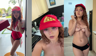 In this leaked nude video, Dare Taylor delivers pizza and teasingly undresses, showing off her small tits. Her playful and seductive moves turn a simple delivery into an intimate, steamy moment. Perfect for fans of pizza delivery fantasies and exclusive nude leaks.