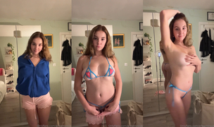 Arina Mirova plays the shy tease in this soft leaked video, walking into her bedroom in a blue sweater. She strips down to a matching blue bikini, slowly slipping off her top while covering her nipples with one hand. With a playful smile, she turns around and slides off her panties, showing her bare ass from the side. Even when nude, she keeps just enough hidden — making this clip feel personal, soft, and intimate.